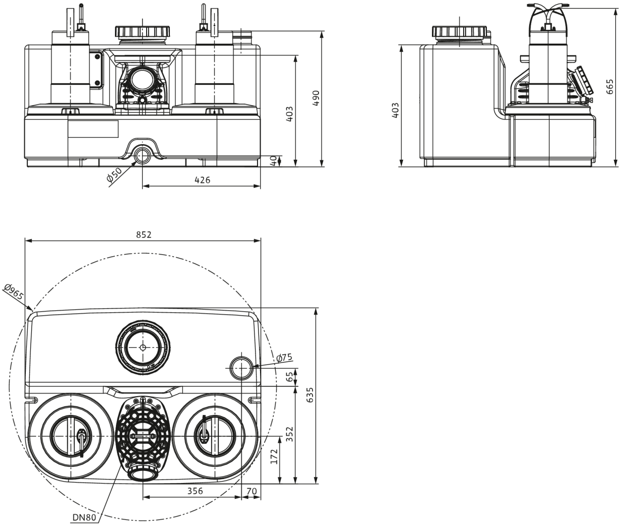 Drainlift SANI-L ist eine hervorragende Wahl für Mehrgenerationenhäuser und Industrieobjekte mit unkontrollierter Abwasserentnahme. Der Motor ermöglicht die Nutzung der optionalen Betriebsmodi Dauerbetrieb und Unterbrechungsbetrieb.