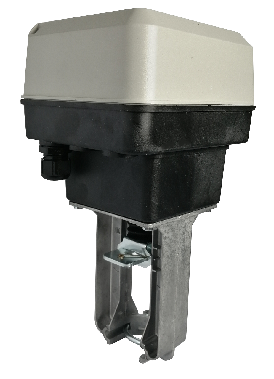 Der elektrische Linearantrieb 0/2..10 V eignet sich für die stufenlose Regelung mit einem Hub von 20 mm und einer Kraft von 600 N. Er findet Anwendung in Heizungs-, Lüftungs- und Klimaanlagen. Das Modell ist mit einer Rückstellfeder für den Fall eines Stromausfalls ausgestattet. Die Feder sorgt für ein automatisches Schließen des Ventils, wenn die Stromversorgung unterbrochen wird. Darüber hinaus kann der Antrieb bei einem Ausfall manuell über eine unter der Abdeckung angebrachte Handsteuerung bedient werden.