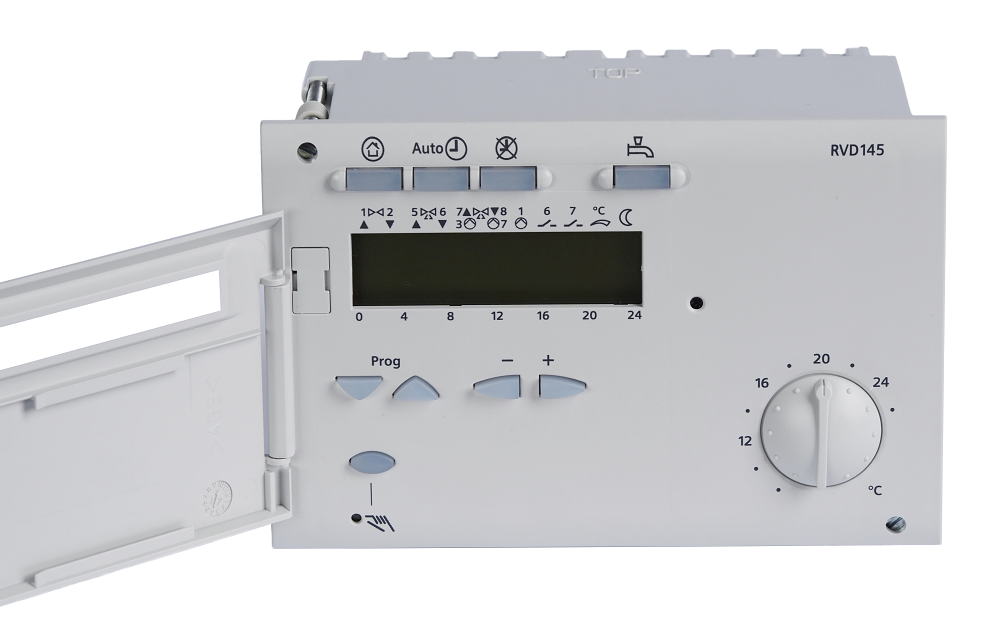 Der Siemens RVD 145/109-A ist ein witterungsgeführter Regler, der für kompakte Übergabestationen konzipiert ist. Die Heizkreise werden witterungsgeführt nach einem Zeitprogramm gesteuert, mit der Möglichkeit, den Einfluss der Raumtemperatur zu berücksichtigen. Die Warmwasserbereitung (TUV) kann durch einen Plattenwärmetauscher im Durchfluss oder mit einer Ladepumpe in einem indirekt beheizten Speicher erfolgen. Für eine einfache Standardisierung des Betriebs bietet er mehrere vorprogrammierte Anwendungen und eine Parametrierung, die in Ebenen unterteilt ist (Benutzer / Service / Schutzparameter).