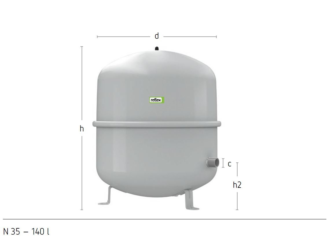 Membran-Druckausdehnungsgefäß für geschlossene Heiz- und Kühlsysteme. Dieses Produkt entspricht der Norm DIN EN 13831 und der Druckgeräterichtlinie 2014/68/EU. Es verfügt über eine Epoxidbeschichtung für eine lange Lebensdauer und eine nicht austauschbare, eingepresste Membran.