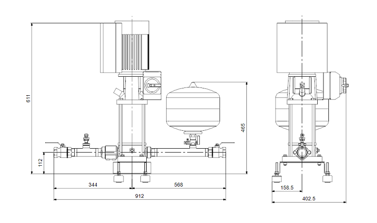 Verstärkerstation Hydro Solo E CRIE 5-5 zur Druckerhöhung aus der Wasserleitung. Stromversorgung 230 V, Q= 9,9 m3/h, H= 51,6 m, DN 32 (1 1/4"). Mehr Informationen