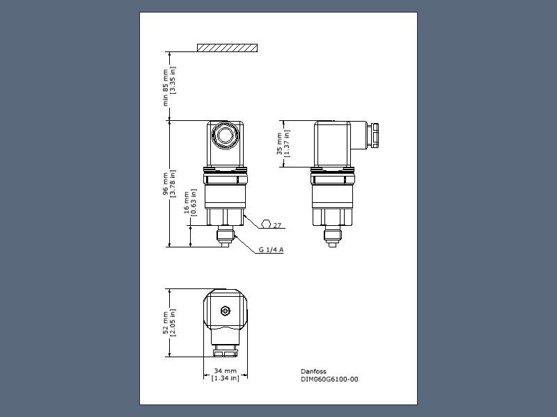 Der Sensor misst im Bereich von 0-6 bar (0-87 psi) und liefert einen Ausgang von 4–20 mA. Die Versorgungsspannung beträgt 9-32 VDC und die Schutzart entspricht IP65. Der Anschluss erfolgt über ein Druckgewinde G 1/4 gemäß EN 837 und elektrisch über einen Winkelstecker gemäß EN 175301-803-A.
