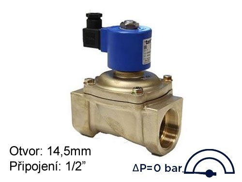 Elektromagnetisches Ventil mit Hilfsanhebung TORK T-ZR103 (S1000) DN 15, Öffnung 14,5 mm, 230 VAC, Anschluss 1/2", Druck 0-16 Bar, stromlos geschlossen. Mehr Informationen