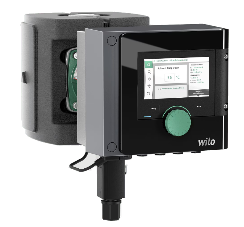 Hocheffiziente, elektronisch gesteuerte Nassläufer-Umwälzpumpe mit den niedrigsten Betriebskosten, zur Installation in Rohrleitungen. Einsetzbar für Trinkwasser-Zirkulationssysteme (0°C bis +80°C), für Heizungs-, Lüftungs- und Klimaanlagen (-10°C bis +110°C). Mit integrierter elektronischer Leistungsregelung für konstanten/variablen Differenzdruck. Serienmäßige Wärmedämmung.