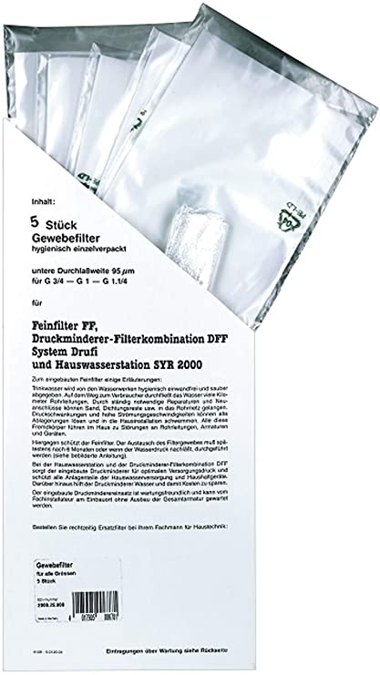 Ersatzsieb für DRUFI DFF und FF Filter von der Marke SYR: Siebdichte beträgt 20 µm. 5 Stück pro Packung. Mehr Informationen