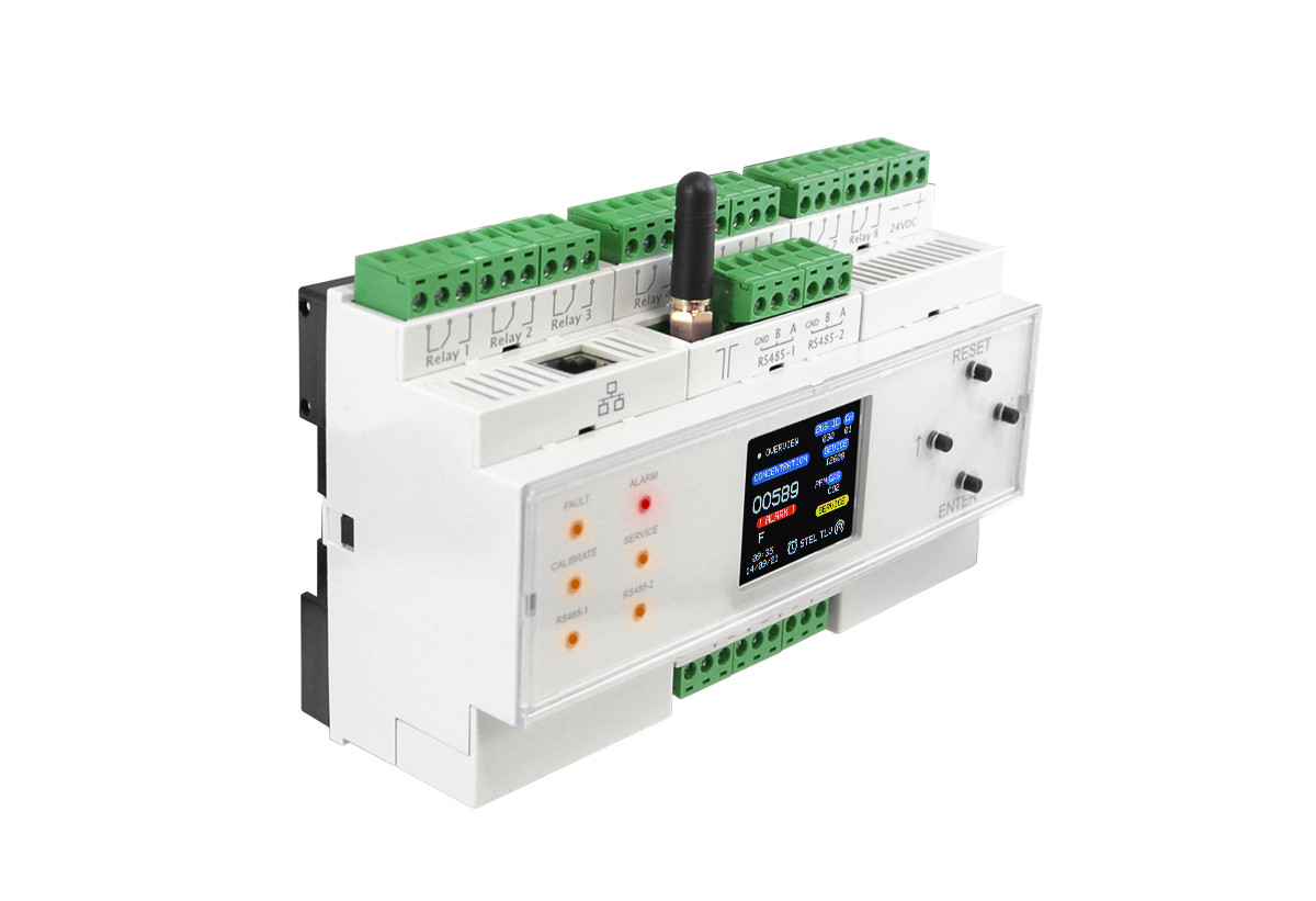 An das Gerät können nicht nur Gasdetektoren, sondern auch Temperatur- und Feuchtigkeitssensoren angeschlossen werden, was eine umfassende Überwachung aller kritischen Faktoren im Betrieb ermöglicht. Die Steuereinheit verfügt über 4 analoge Ausgänge, die die Gesamtkonzentration der Gase in einem bestimmten Bereich anzeigen können, was die Überwachung der verschiedenen Gasniveaus in der Umgebung erleichtert. Darüber hinaus stehen digitale Eingänge für weitere Automatisierung und die Verbindung mit anderen Systemen zur Verfügung.