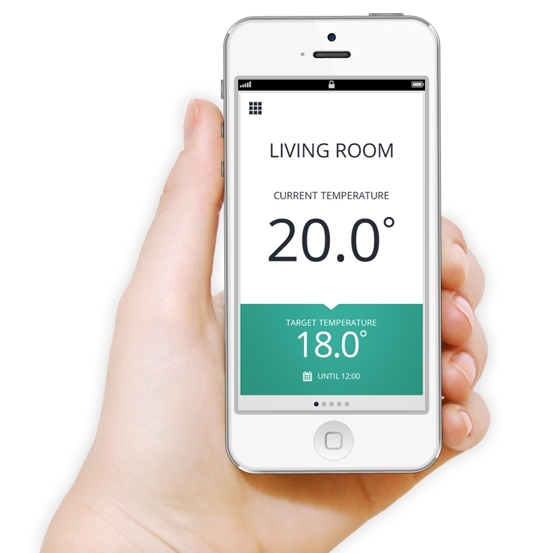 Heizung und Warmwasserbereitung können entweder direkt über den Touchscreen der Steuereinheit oder von überall aus über den mobilen Fernzugriff per "Smartphone" oder Tablet (über eine kostenlose App für iOS oder Android) gesteuert werden.