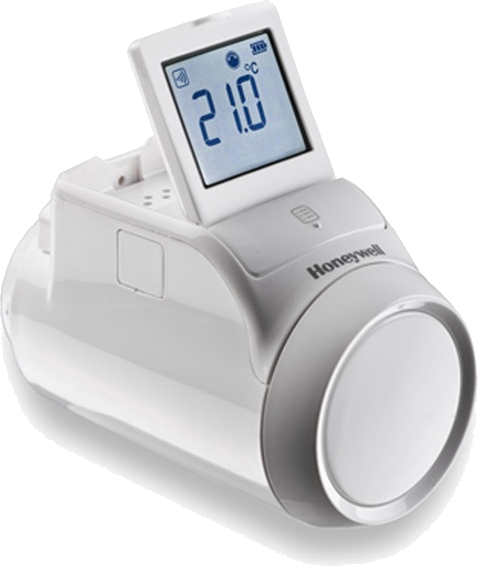Der drahtlose Thermostatkopf der Marke Honeywell ist zur Steuerung des Heizkörpers mit einer Frequenz von 868 MHz vorgesehen. Der Kopf ist kompatibel mit dem intelligenten Heizsystem Evohome. Ein großer Vorteil des Kopfes ist das beleuchtete, positionsverstellbare Display. Die Auswahl der Position verbessert die Lesbarkeit. Zum Einschalten des Displays genügt es, eine Taste zu drücken oder den Kopf zu drehen.