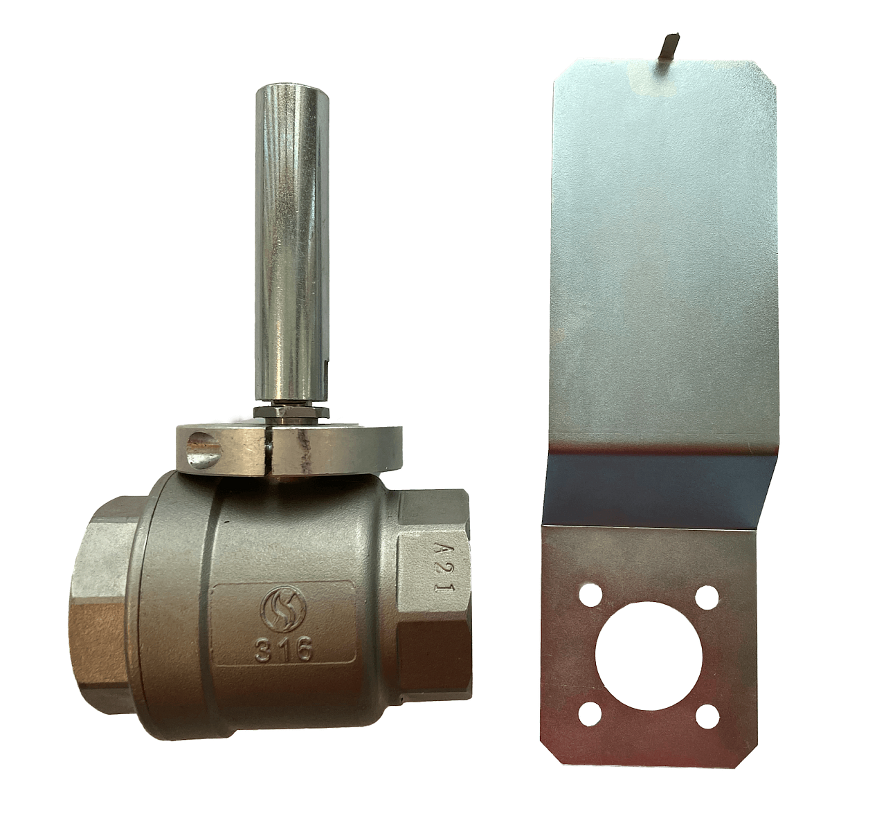 Zweikanaliges, gewindetes Kugelventil mit Edelstahlantrieb. Die Armatur ist zur Regulierung und Absperrung des Medienflusses bestimmt. Auch geeignet für hohe Druckdifferenzen und Temperaturen.