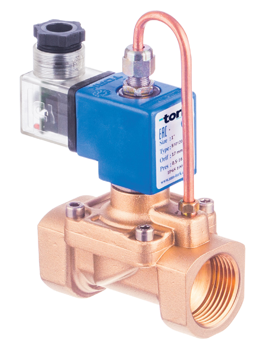 Elektromagnetisches Ventil für Wasser und Flüssigkeiten TORK T-GHA105 DN 25, stromlos geöffnet, max. 40 bar. Mehr Informationen