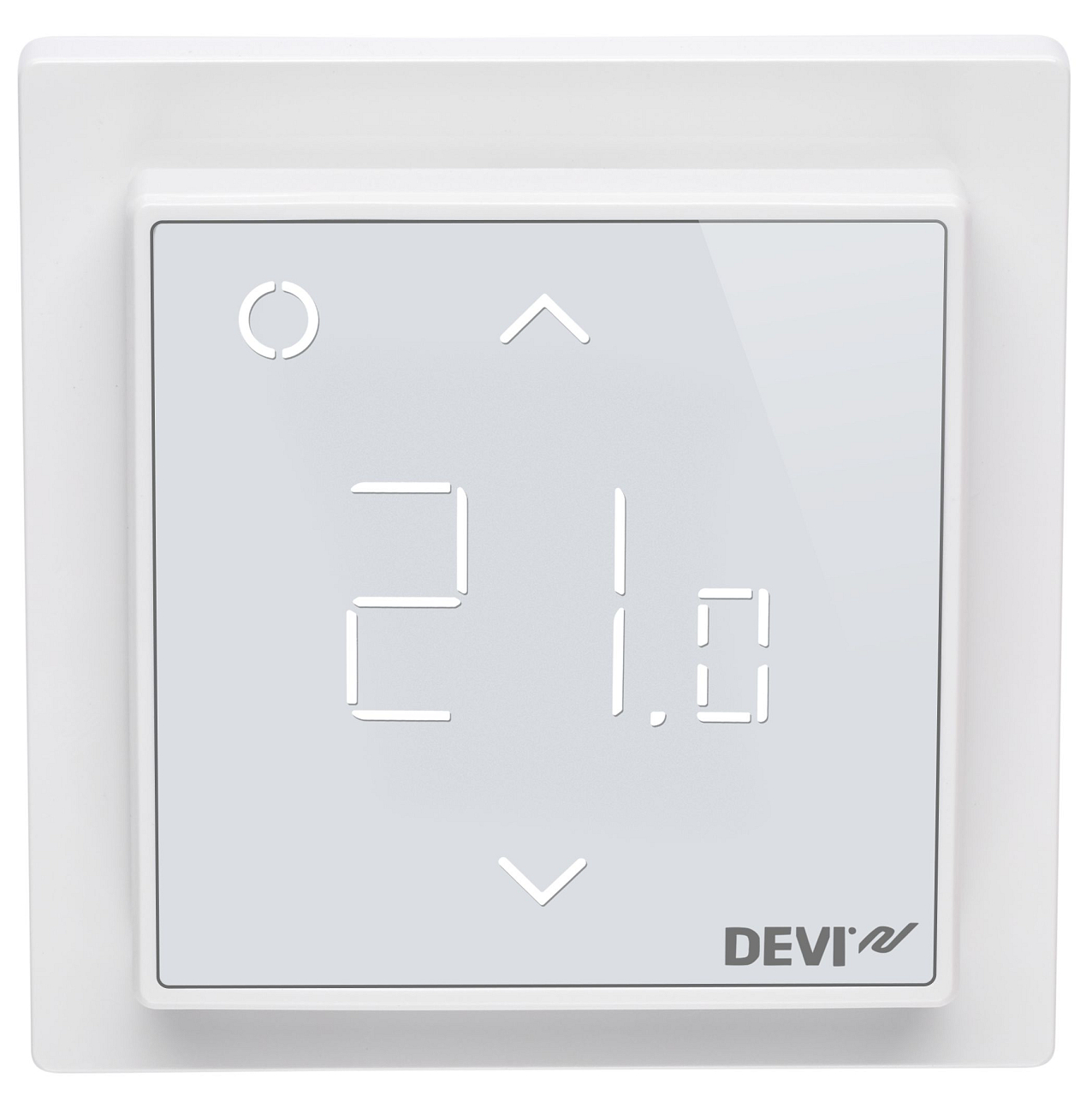 Raumthermostat mit Display Danfoss DEVIreg Smart 230 V zur Wand- oder Unterputzmontage, programmierbar. Ideal für Fußbodenheizung. In Polarweiß. Mehr Informationen