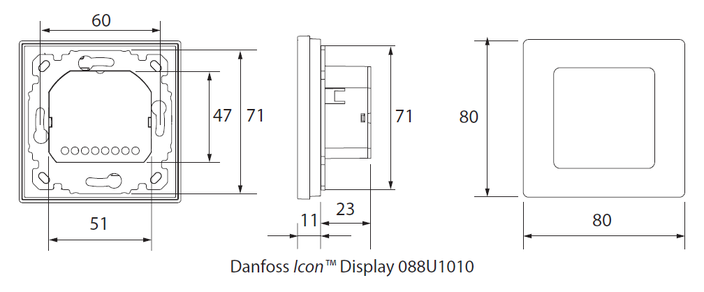 Der moderne Raumthermostat Danfoss Dial aus der Danfoss Icon Familie reguliert die Fußbodenheizung über eine Steuerung auf dem Touchscreen, auf dem die gewünschte Temperatur im Bereich von 5-35 °C eingestellt werden kann. Der Bildschirm dient auch zur Anzeige der aktuellen Raumtemperatur. Er kann eigenständig verwendet oder an den Steuerregler Master Controller angeschlossen werden. Über den Relaisausgang kann er bis zu 5 thermoelektrische Antriebe steuern. Der Bildschirm ist im Normalzustand ausgeschaltet und wird durch Berühren aktiviert. Eine Frostschutzfunktion (5 °C) ist integriert.