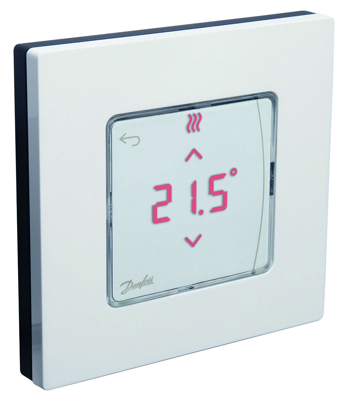 Der moderne Raumthermostat Danfoss Dial aus der Danfoss Icon Familie reguliert die Fußbodenheizung über eine Steuerung auf dem Touchscreen, auf dem die genaue gewünschte Temperatur im Bereich von 5-35 °C eingestellt werden kann. Der Bildschirm dient auch zur Anzeige der aktuellen Raumtemperatur. Er kann eigenständig verwendet werden oder an den Steuerregler Master Controller angeschlossen werden. Über den Relaisausgang kann er bis zu 5 thermoelektrische Antriebe steuern. Der Bildschirm ist im Normalzustand ausgeschaltet und wird durch Berührung aktiviert. Eine Frostschutzfunktion (5 °C) ist integriert.