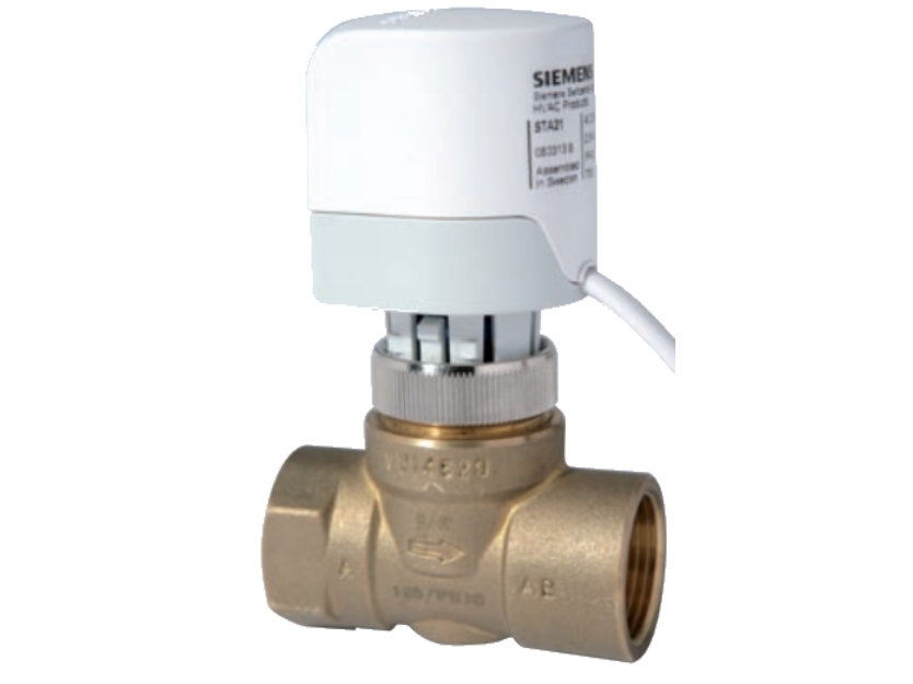 Das Regelset SVI 46 enthält das Zweikanal-Verteilerventil VVI 46 und den thermischen Servoantrieb STA mit einem Zweipunkt-Steuersignal.