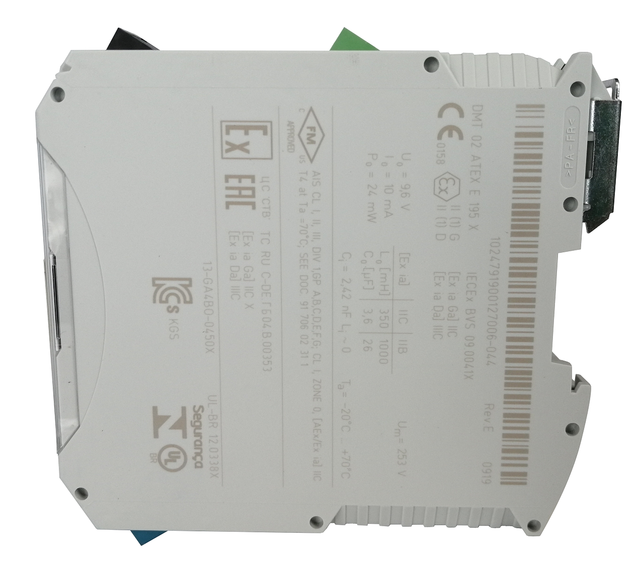 Schaltverstärker mit eigensicherem Stromkreis für Thermostate, Frostschutzthermostate, Druckschalter, Kontakte, Filterüberwachung, Ein-Aus-Signale. Ermöglicht den sicheren Anschluss von Geräten an den Stromkreis auch in explosionsgefährdeten Bereichen der ATEX-Zonen 0, 1, 2, 20, 21, 22.