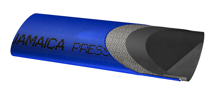 Der Flachschlauch kann im Kontakt mit Wasser, künstlichen Düngemitteln, chemischen Lösungen usw. verwendet werden. Er besteht insgesamt aus drei Schichten. An der Oberfläche befindet sich ein blauer flexibler PVC-Stoff, in der Mitte ein Polyester-Garn und innen eine Seele aus schwarzem PVC.