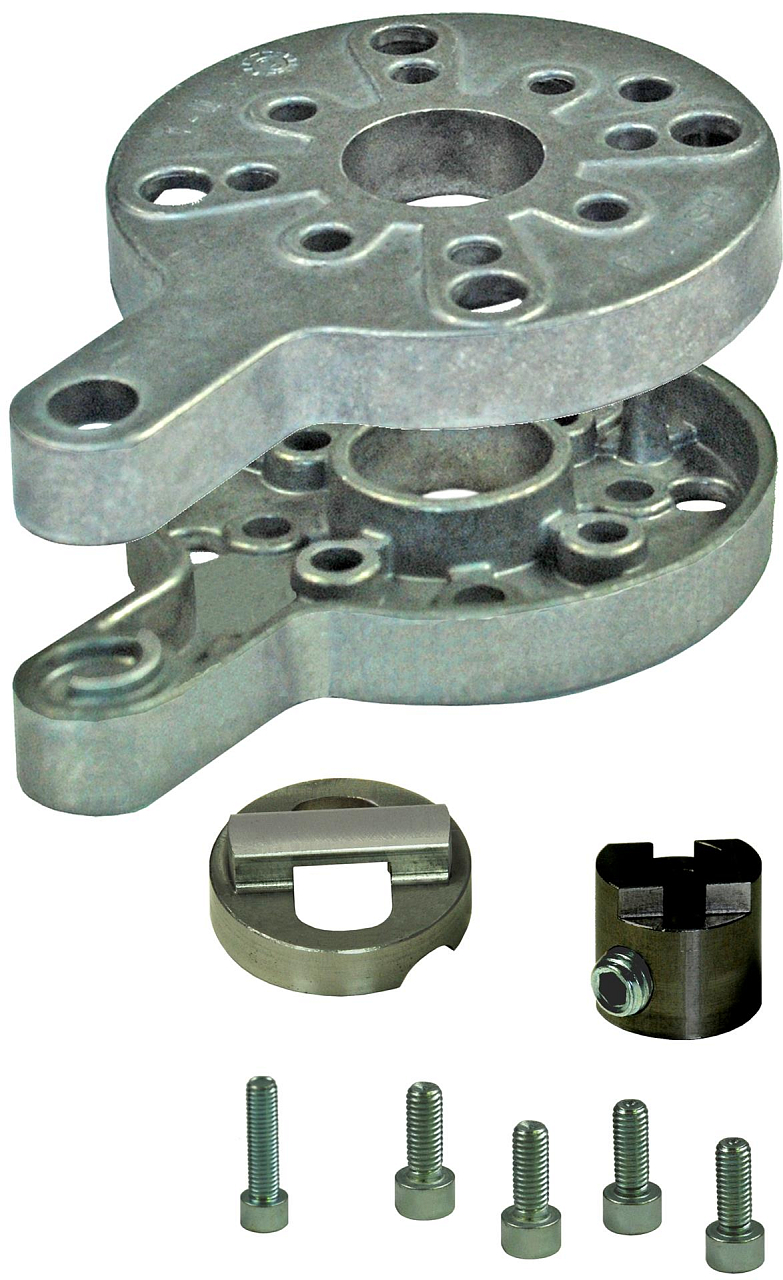 Das Montageset für die Ventile VBF21.. in den Größen DN 65-150 dient als Adapter für die Antriebe SAL..T10.
