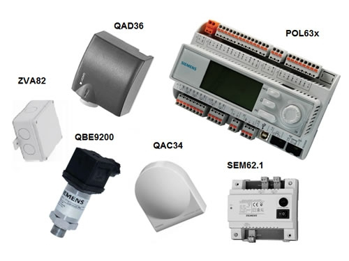 | Störmeldesystem | Stromquelle 24V DC (LOGO!POWER 24 V) | Drucksensor 0-10V (QBE9200) | Überflutungssensor (ZVA82) | Raumtemperatursensor NTC (QAC34) | Systemtemperatursensor NTC (QAD36) |
