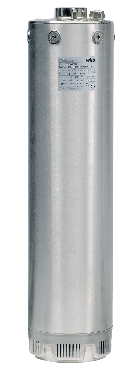 Tauchpumpe für Brunnen Wilo TWI 5" in komplett rostfreier Ausführung. Dank der verbesserten Konstruktion ist die Lebensdauer verlängert und die Beständigkeit gegen Sandverschleiß erhöht.
