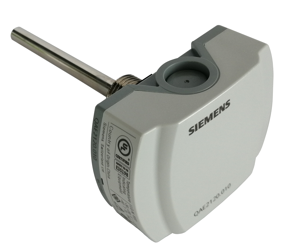 Untertauchbares passives Temperaturfühler QAE 2120.010. Wird zur Messung der Wassertemperatur in Rohrleitungen und Speichern, zur Regelung oder Begrenzung der Heizwassertemperatur, zur Begrenzung der Rücklauftemperatur und zur Regelung der Erwärmung von Warmwasser verwendet.