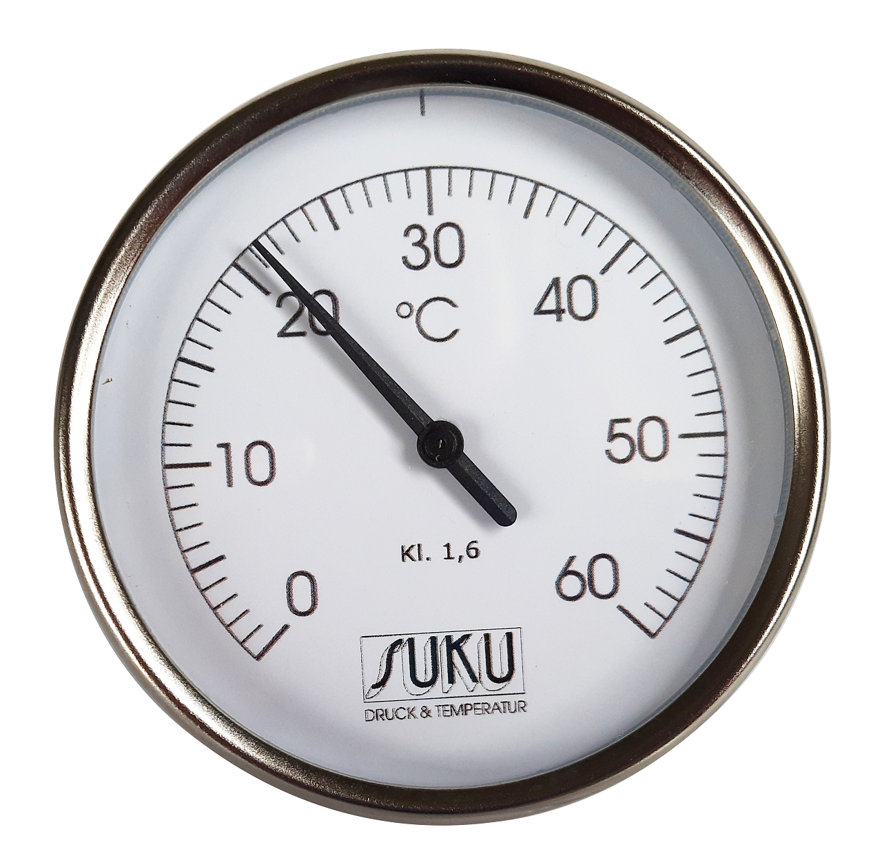Bimetall-Thermometer SUKU, D 100, L 45, 0-60°C + Tauchhülse 1/2. Mehr Informationen