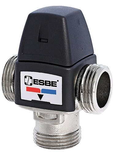 Thermostatisches Mischventil ESBE. Einstellbarer Temperaturbereich 35-60 °C. Dimension DN 20, Anschluss Außengewinde G 1". Mehr Informationen