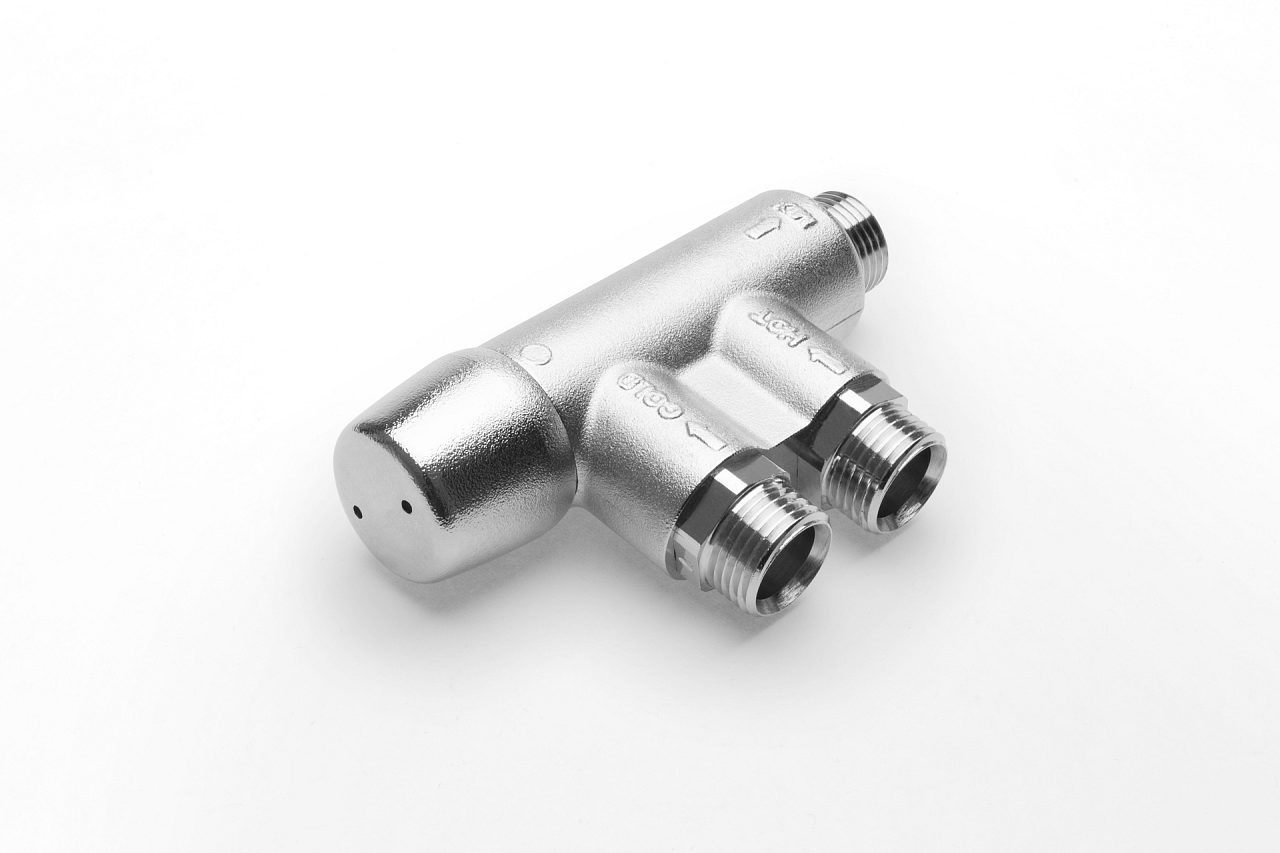 Der automatische thermostatische Mischventil NovaMix Compact 70 sorgt für eine konstante Temperatur am Entnahmeort. Dadurch kann auch bei hohen Speichertemperaturen ein dauerhafter Verbrühschutz gewährleistet werden. Das Mischventil kann sowohl für sanitäre Installationen in Haushalten als auch in öffentlichen Bereichen verwendet werden. Dank des ästhetischen Designs eignet es sich zur Installation direkt unter dem Waschbecken. Der Regelbereich ist bis 70 °C einstellbar, weshalb es sich für den Einsatz bei thermischer Desinfektion eignet. Eingebaute Rückschlagventile gewährleisten eine optimale hydraulische Funktion.