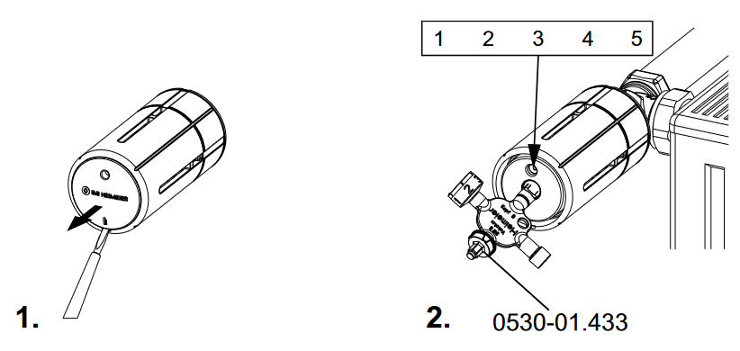 Um die Temperatur einzustellen, muss zuerst die Abdeckung an der Vorderseite des Kopfes entfernt werden. Dann wird mit einem speziellen Schlüssel die gewünschte Temperatur durch Drehen eingestellt. Nach der Einstellung wird die Abdeckung wieder angebracht.