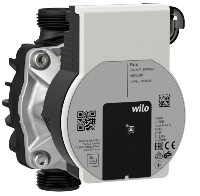 Elektronisch gesteuerte Umwälzpumpe für die Zirkulation von Trink- und Brauchwasser. Die externe bidirektionale Steuerung iPWM2 ermöglicht die direkte Übertragung des Zustands und der Durchflussabschätzung an ein übergeordnetes System. Das Verbundgehäuse ist für Anwendungen mit TUV geeignet.
