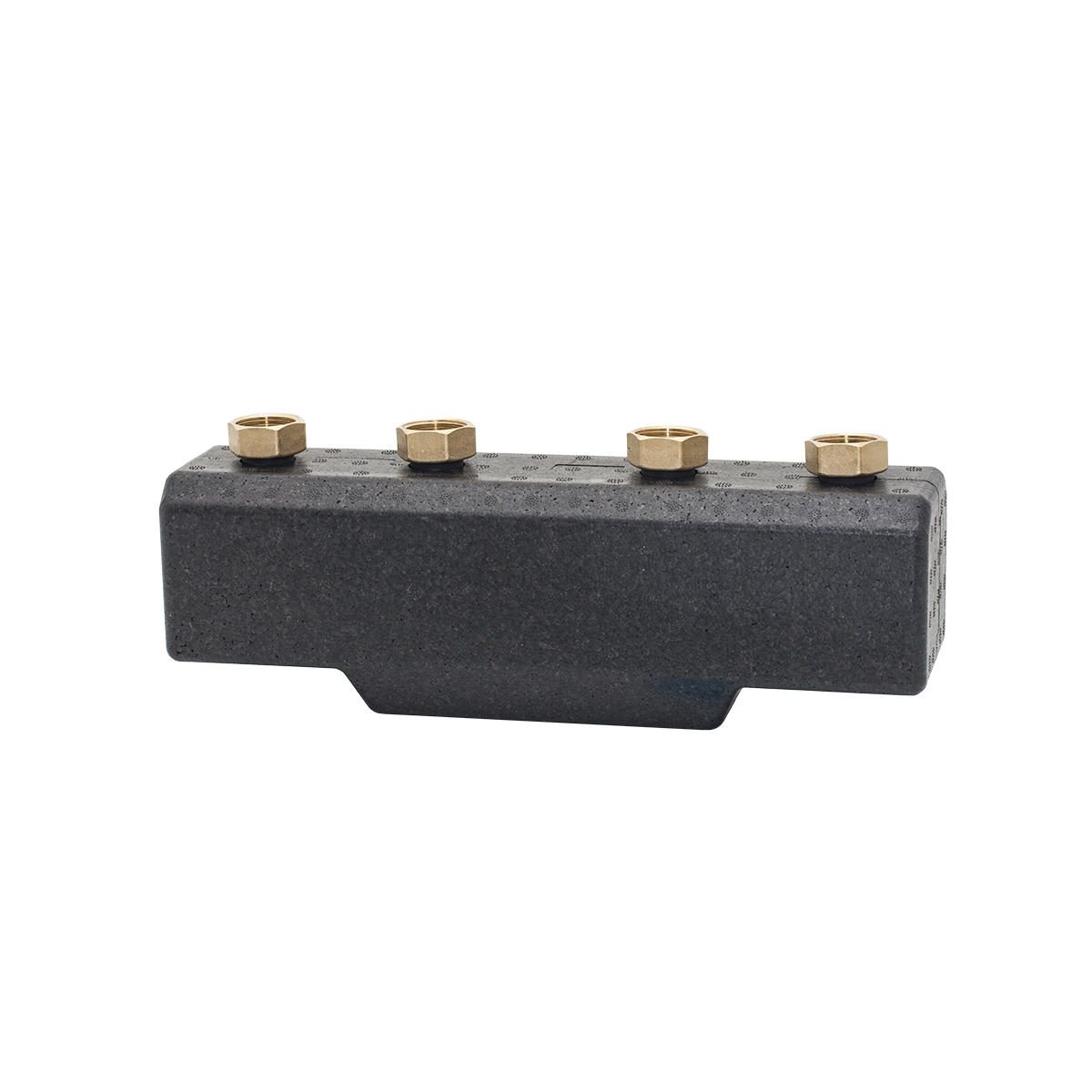 Verteiler für Pumpengruppen mit Anschlussgröße DN 20, also für die Serien GxA300. Der Standardausgangsmaß beträgt 90 mm. Der Verteiler ist in einer Isolierabdeckung verpackt und mit Wandhalterungen zur Befestigung an der Wand ausgestattet. GMA321 ist geeignet für zwei Pumpengruppen. Ohne Funktion eines hydraulischen Separators.